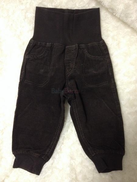 Tmavě hnědé manžestráčky s vysokou gumou v pase. Značka HM, velikost 80, 9-12 měsícu. Cena + poštovné a nebo osobní předání na Praze 3